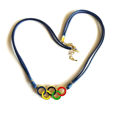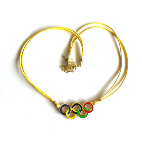 Ben je een Olympische sporter of vind je de Olympische ringen gewoon mooi? Deze ketting met de gekleurde Olympische ringen is verkrijgbaar in zwart, rood, donkerblauw, geel en groen en is verstelbaar. De afmetingen van de Olympische ringen zijn 4 cm bij 1,7 cm.